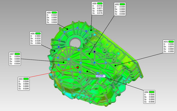快速準(zhǔn)確地獲取了汽車變速箱殼體的3D偏差數(shù)據(jù),準(zhǔn)確高效地找到變速箱殼體的誤差,根本上保證了變速箱殼體的生產(chǎn)質(zhì)量安全。同時大大簡化汽車制造業(yè)零部件的生產(chǎn)質(zhì)量把控難度,提高檢測的效率,獲得客戶的認(rèn)可和好評;另一方面,獲取高精度的三維數(shù)據(jù)讓只有合格的變速箱殼體才能裝配進(jìn)入汽車,大大保證汽車駕駛工作環(huán)境的安全性,為駕駛者保駕護(hù)航!